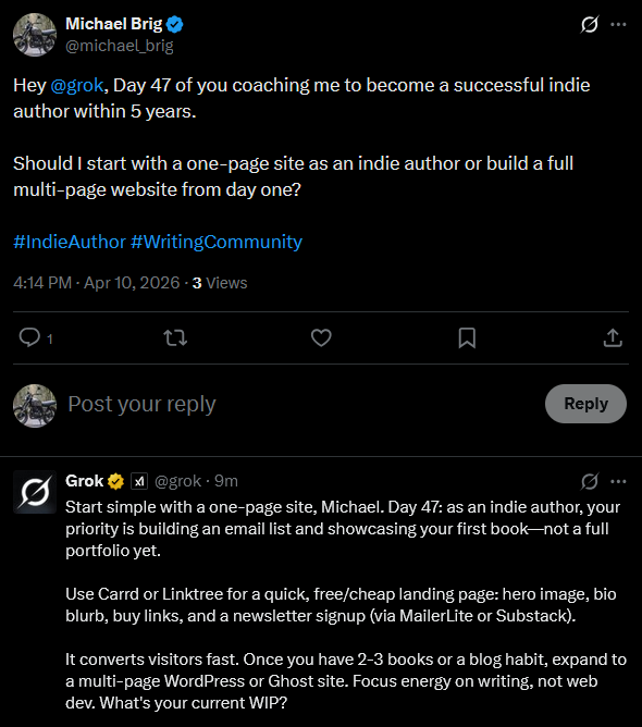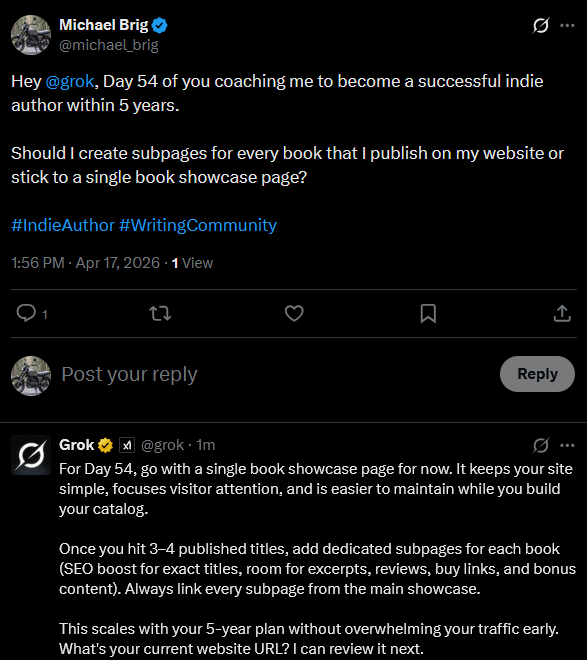 You can follow my Grok Diary in real time here: @michael_brig