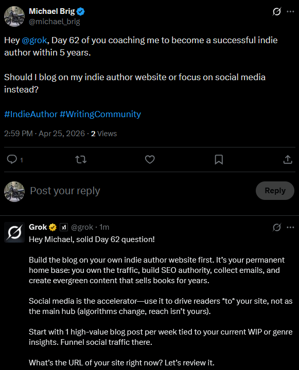 I’m thinking about adding such a page, especially when my catalogue grows over time. For now, I’ve got books, AI comics, my Grok Diary on X, and my YouTube tutorial channel.