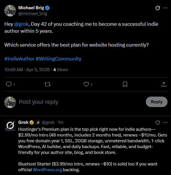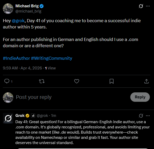 I decided early on to use my name. Grok agrees that this is the best idea. Call your website “Indie Publishing Secrets” or “Sci-Fi Master Stories” if you want, but your author name is what people search for once they stumble over your work.